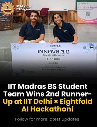 Winner of 2nd Runner-Up at IIT Delhi × Eightfold AI Hackathon, featured by IIT Madras for building CodeSage - a voice-enabled AI interview coach with real-time analysis, designed in 36 hours.